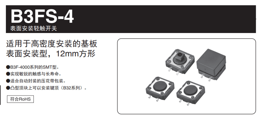 我司備有各種輕觸開關(guān)都可以用于各類農(nóng)機控制器中;其中平地儀還會用到輕觸開關(guān)B3FS-4系列;歡迎電話咨詢廣州鼎悅電子科技有限公司;相信我們可以帶給您不一樣的選擇;如圖: