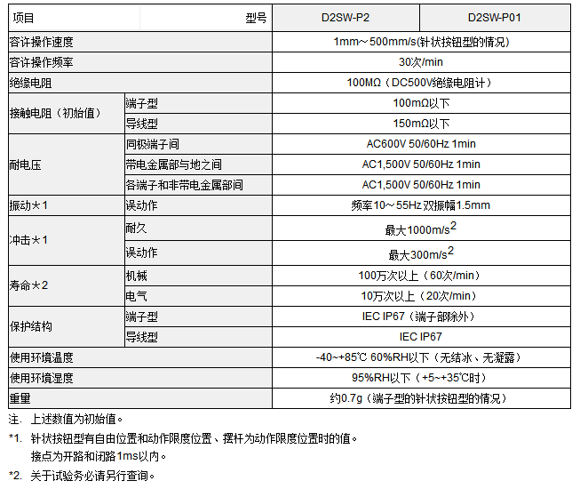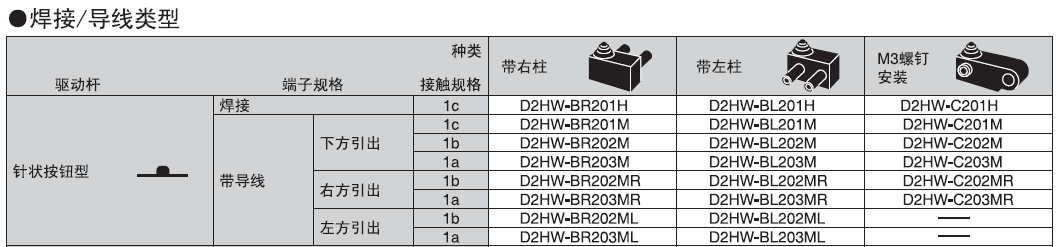 針狀按鈕型 D2HW- 20![]()