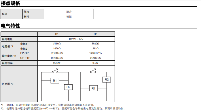 內(nèi)置電阻,可檢測4種狀態(tài) 長行程密封型開關(guān) 開關(guān) ON/OFF/短路/斷線 輸出4種狀態(tài) 即使無擺桿也便于使用的長行程規(guī)格 (OT參考值:1.4mm) 憑借滑動(dòng)接點(diǎn)結(jié)構(gòu)實(shí)現(xiàn)高接觸可靠性和安靜的動(dòng)作音