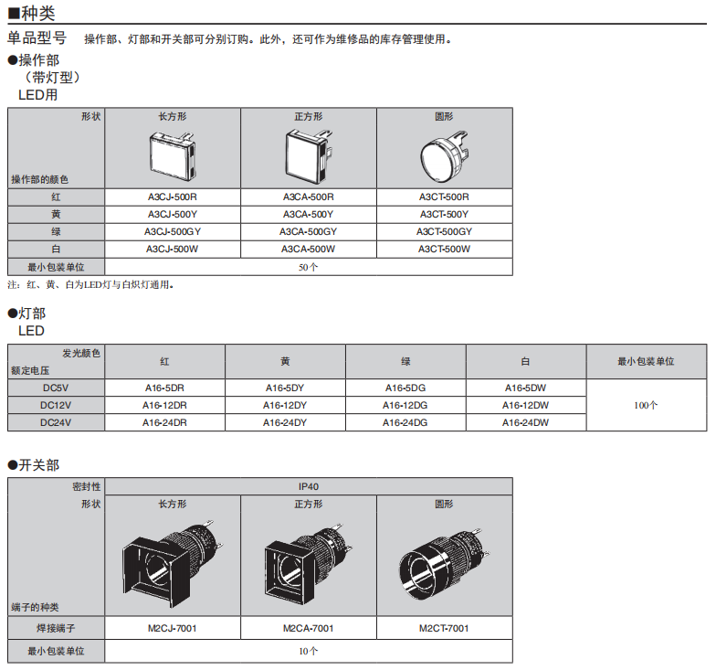 長20mm、 圓型f12系列 ●與按鈕開關A3C系列是同一類型。 ●高亮度的均一表面發光。 ●圓形便于開孔。